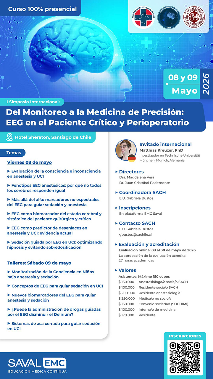 • Certifica la Sociedad de Anestesiología de Chile.